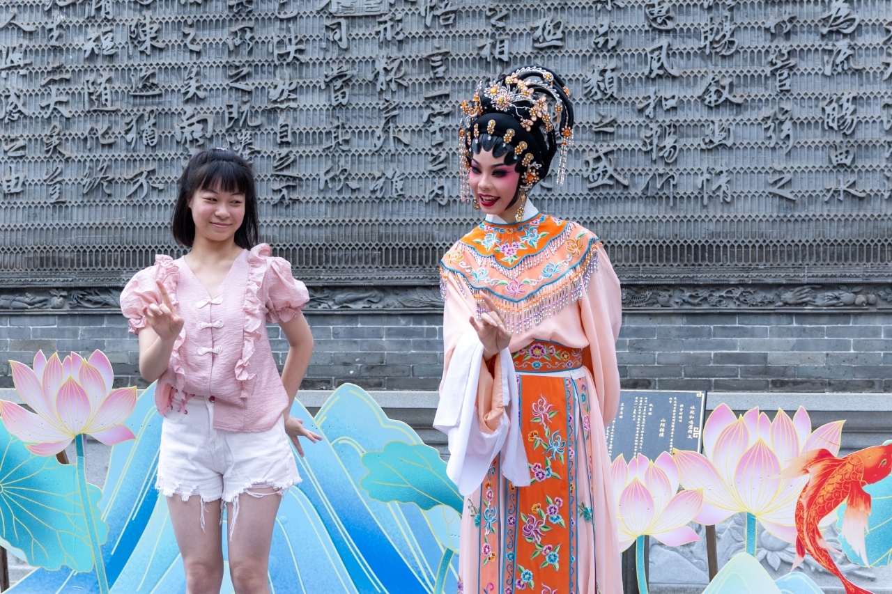 每日11:40的粤剧快闪巡游更是一大亮点,演员身着戏服沿艺林苑牌坊至风味馆巡游,以情景互动带领游客沉浸式感受粤剧魅力。